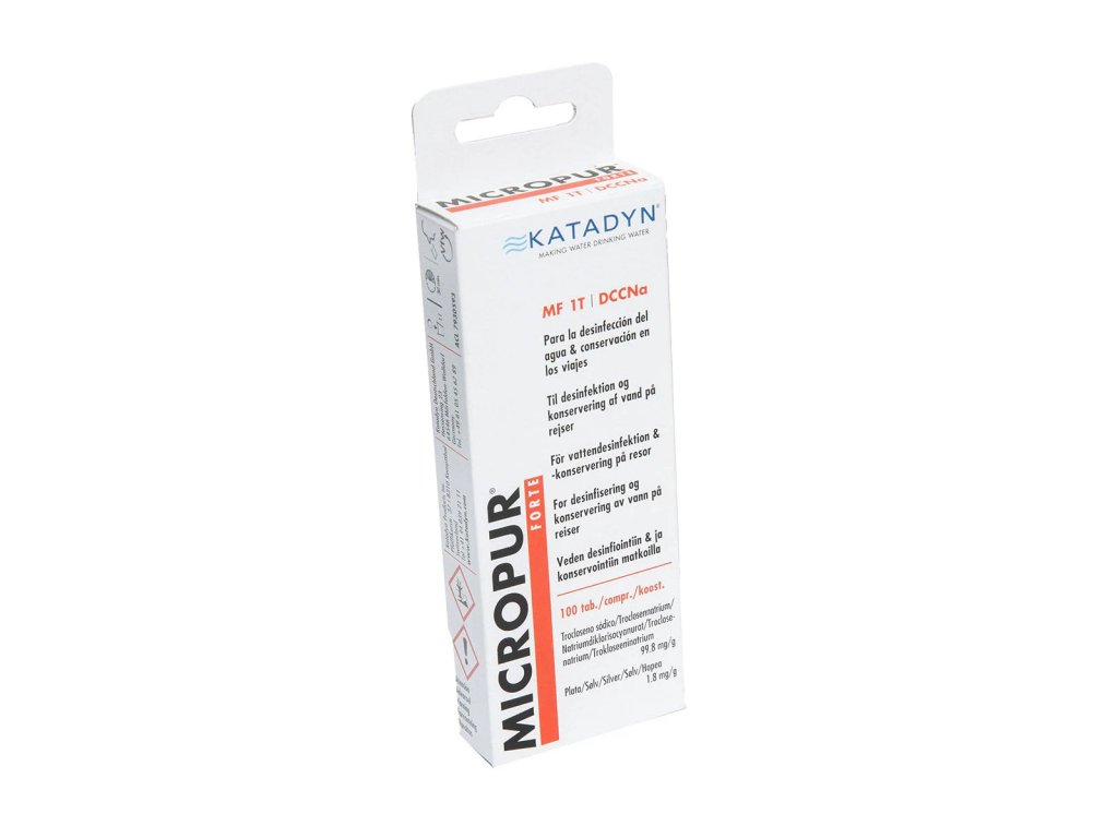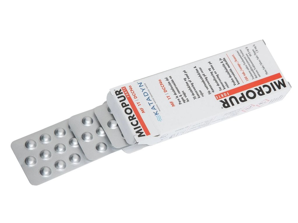MICROPUR Forte MF 1T je rychlá a účinná dezinfekce vody ve formě minitablet. Jedná se o unikátní kombinovaný přípravek využívající technologii aktivního chlóru a stříbrných iontů. V důsledku vysokého dezinfekčního účinku zbaví vodu do 30 minut bakterií a virů a současně vydezinfikovanou vodu zakonzervuje až na dobu 6 měsíců. Za 2 hodiny dokáže eliminovat velmi odolné prvoky jako např. Lamblie (Giardia Intestinalis).
