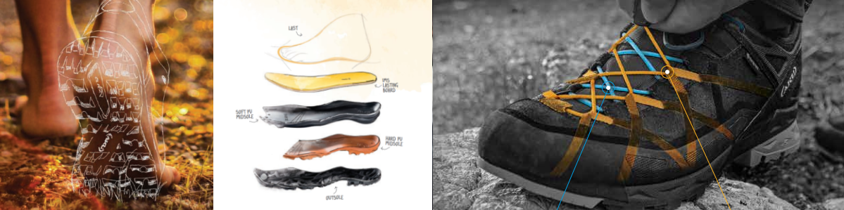Tvrdší podrážka nám pomůže pevněji se postavit na nohu. Nebude nás tlačit šprušle nebo skála a lépe se rozloží naše hmotnost na větší plochu boty. To nám také napomáhá spolu s vystužením, aby bota nerotovala (malá torze) v podélné ose. Tím snížíme riziko zvrtnutí kotníku a zároveň neomezuje v pohybu. Hrana na špici nám zase pomáhá, abychom se mohli postavit i na menší výstupky - využijeme tam co největší plochu stupu. Obyčejné tenisy mají zaoblenou špičku pro pohodlnější chůzi. My však potřebujeme hranu na špičce, protože míříme vzhůru.