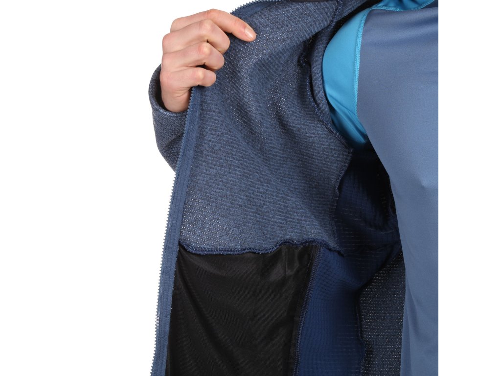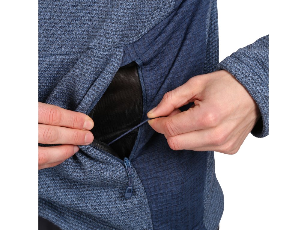 Pánská outdoorová mikina ALASKA je vyrobená z recyklovaného materiálu Kore Sweater fleece, který vyniká svou výhřevností. V bocích a podpaží je aplikován funkční materiál Kinetix Grid fleece, který odvětrává přebytek tepla a zajišťuje odvod vlhkosti.