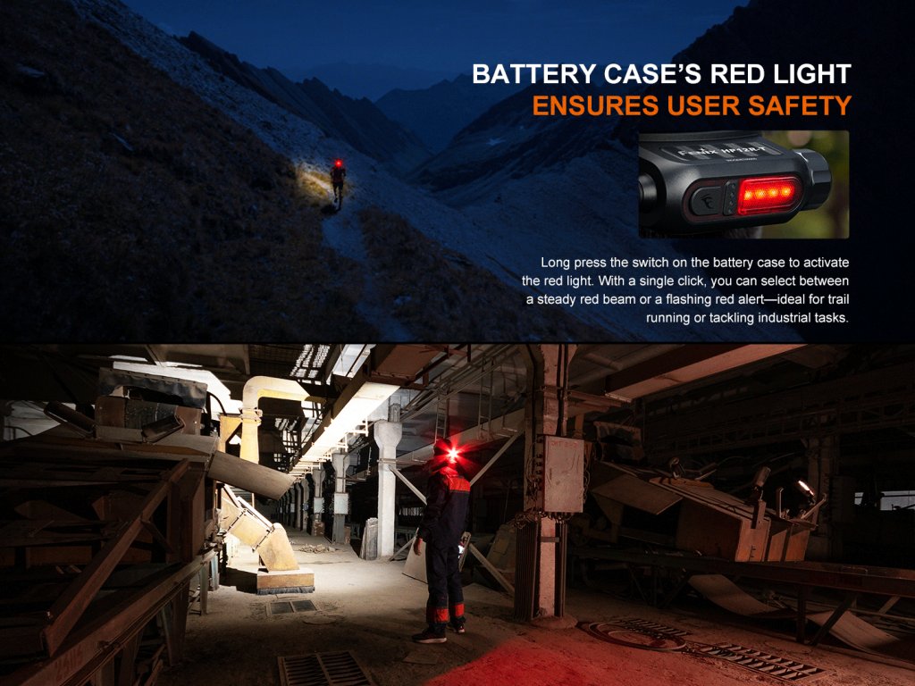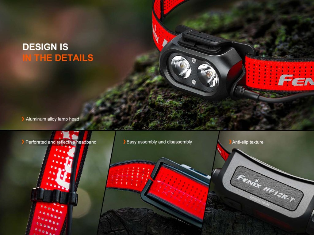 Fenix HP12R-T je vysoce výkonná čelovka s praktickou konstrukcí, která má oddělené zadní pouzdro na baterii. Díky dvěma reflektorům poskytuje světelný tok až 1300 lumenů (ANSI) a dosvit až 200 metrů. Reflektory vytváří dobře zaostřené světelné paprsky, které svítí do dálky i na blízko zároveň.