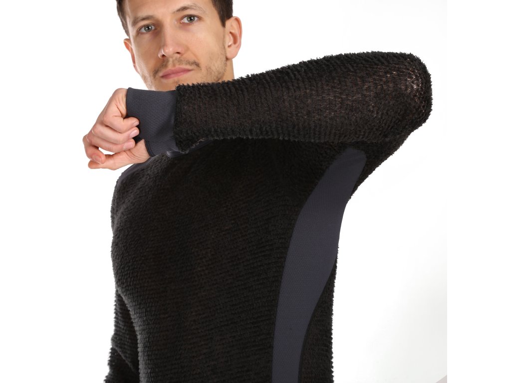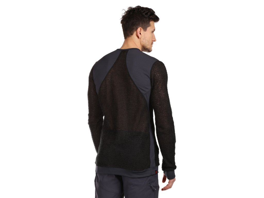 Oblast ramen je zesílená odolným materiálem, aby nedocházelo k opotřebení při nošení batohu. Rukávy pánského trika jsou opatřeny otvory na palce. Díky tomu je rukáv na místě a poskytuje extra vrstvu tepla pro ruce.
