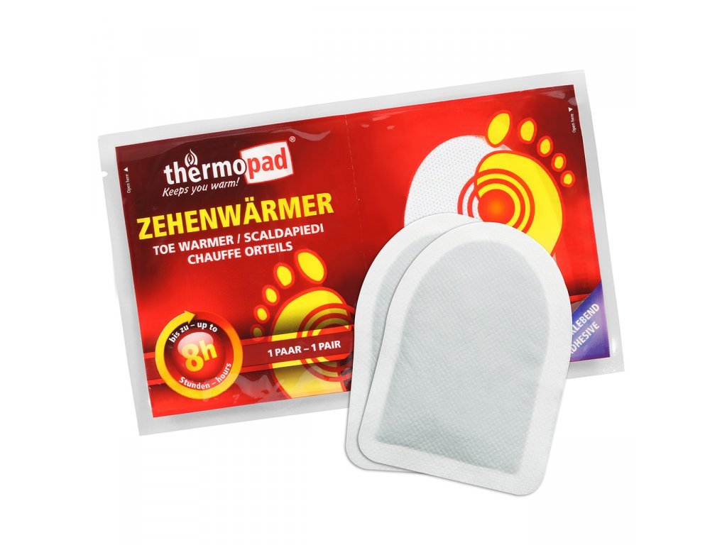Ohřívač prstů nohou Thermopad Zehenwärmer je praktický ohřívač pro jednorázové užití. Ohřívač po vytažení ze sáčku začne během chvilky reagovat s kyslíkem a začíná hřát. Přírodní teplo vydrží až 8 hodin a vy si tak můžete bez starostí užívat zimních sportů či radovánek.