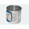 Vyroben z nerezu CrNi 17/0. Hrnek je zpevněn lemovkou a má sklápěcí ucha.