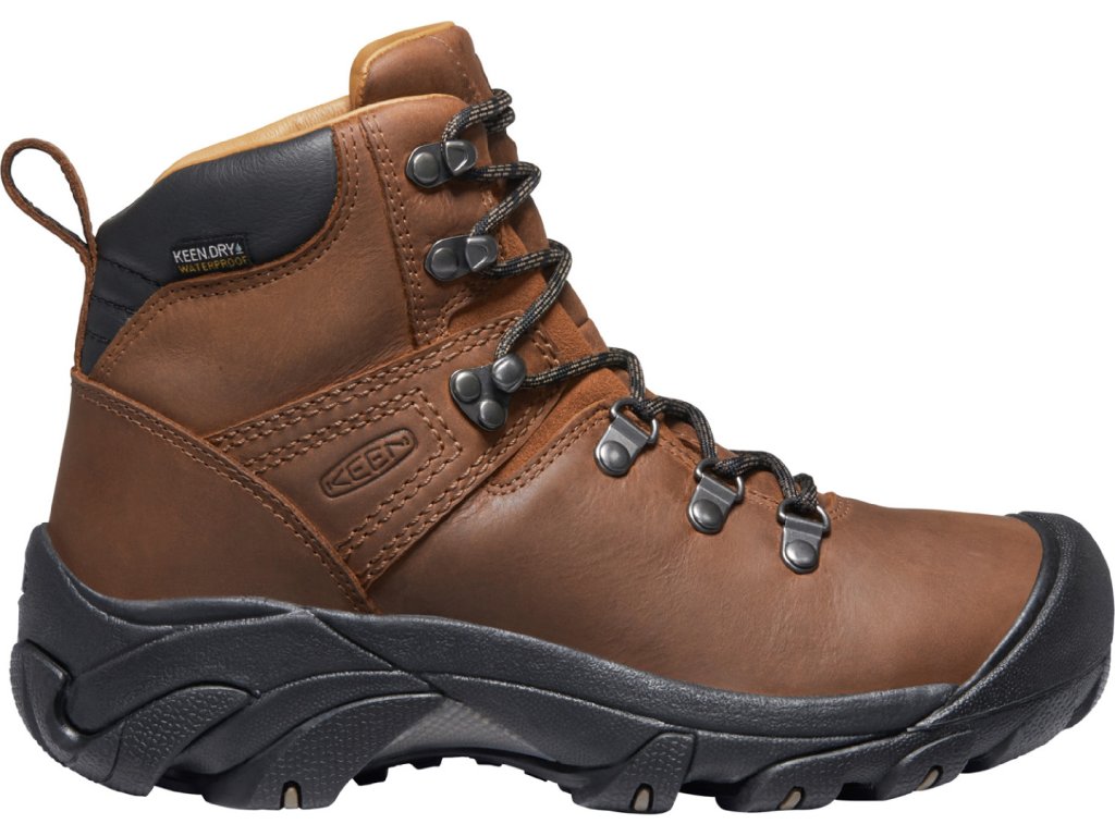 Keen Pyrenees jsou extra pohodlné pohorky, klasického, lehce konzervativního designu. Jsou lehké, a výborně se hodí jak na túry po kopcích, tak pro outdoorové cestovatele. Kvalitní gumová podrážka s?hlubokým, vícesměrným vzorem vám zaručí bezpečnou chůzi v?kamenitém terénu. Tam také oceníte i zvýšenou odolnost proti podvrknutí kotníku. Svršek boty je z?kvalitní, voděodolné kůže, která společně s?membránou KEEN.DRY a PFC free impregnací dokonale ochrání vaše nohy i v?hustém dešti. Kovové háčky a poutka u šněrování vás nenechají ve štychu ani při dlouhých cestách za dobrodružstvím.