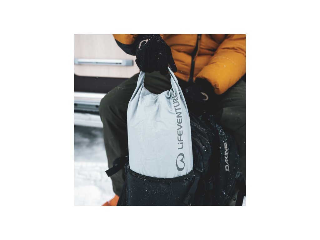 Rolovací uzávěr s ultralehkou sponou na zacvaknutí zajišťuje bezpečné uzavření, zatímco eliptický tvar maximalizuje efektivitu balení. Madlo na spodní straně usnadňuje vyjmutí z batohu, což je ideální pro lehká dobrodružství, cestování a vodní aktivity.