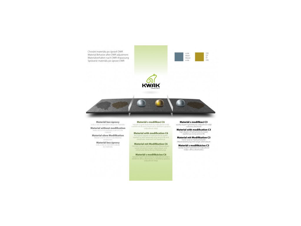 Povrchová úprava - Hydrofobní a oleofobní DWR C6 nejvyšší třída - lotosový efekt voda, olej, Fluorokarbon (PFC-no free)