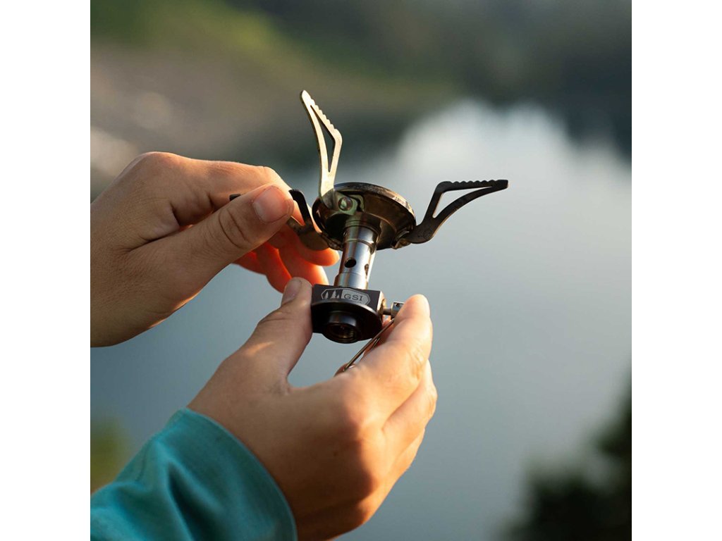 Ultra kompaktní nerezový výkonný plynový vařič s piezo podpalovačem, navržený pro maximální efektivitu vyváženosti mezi rychlostí varu a spotřebou plynu. Zoubkovaná rozkládací ramena poskytují dostatečně velkou stabilní a bezpečnou plochu pro vaření.