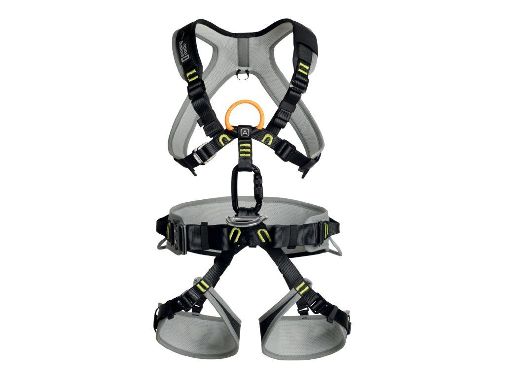 - hrudní úvazek nabízí oranžový textilní bod EN 361 pro zachycení pádu označený štítkem A