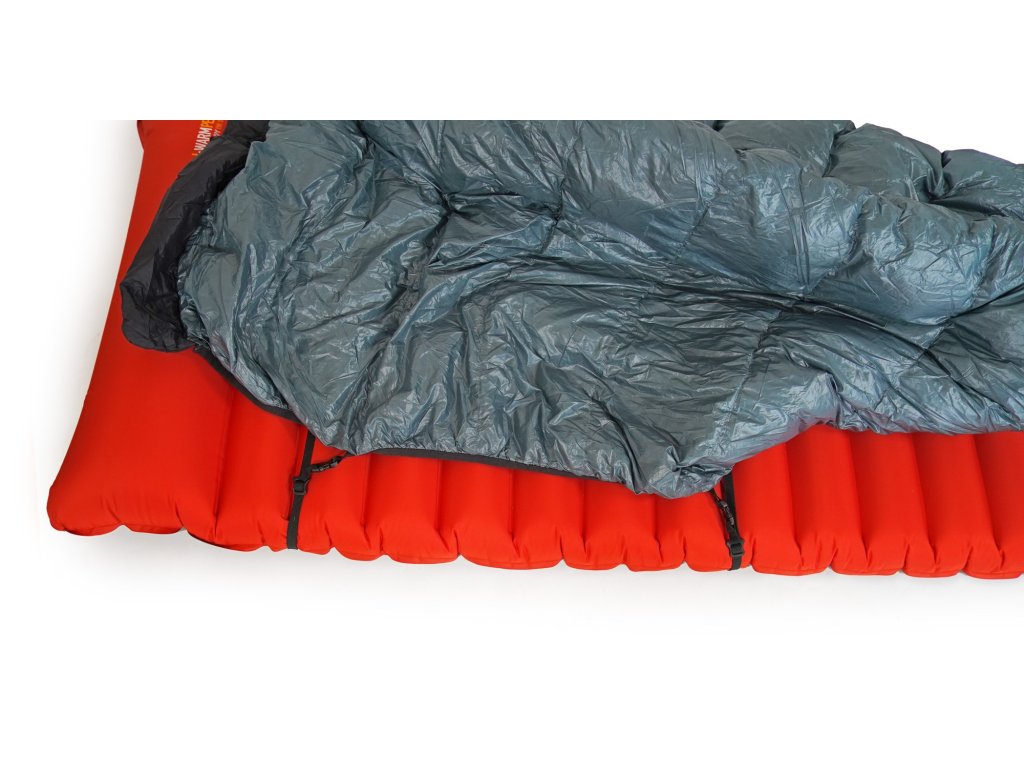 SCALE QUILT 215 je spojením ultralehké konstrukce spacáků linie SCALE a quiltového střihu. Výsledkem je univerzální odlehčené řešení pro letní přenocování pod přikrývkou nebo v uzavřeném quiltu, jehož zádovou část tvoří připojená spací podložka.