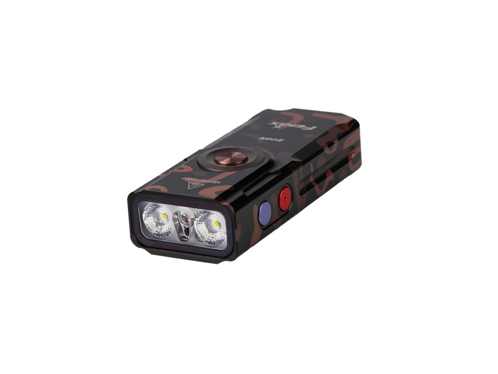 Fenix E06R je větší variantou úspěšné miniaturní nabíjecí svítilny Fenix E03R V2.0. Proti ní má nejen vyšší výkon, ale i ultrafialové světlo a laserové ukazovátko. I přes kompaktní rozměry a váhu pouhých 54 gramů nabízí vysoký světelný tok až 700 lumenů (ANSI). Svítilna je dodávána včetně pevného klipu, takže ji můžete uchytit na kapsu, popruh batohu či kšilt čepice a uvolnit si tak při svícení ruce. Díky magnetu v patce svítilny ji můžete přichytit k čemukoli železnému. Praktický je také indikátor stavu nabití baterie v tlačítku.