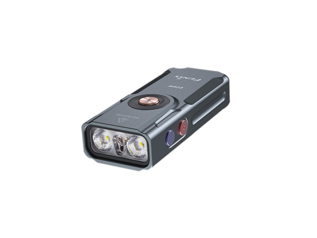 Fenix E06R je větší variantou úspěšné miniaturní nabíjecí svítilny Fenix E03R V2.0. Proti ní má nejen vyšší výkon, ale i ultrafialové světlo a laserové ukazovátko. I přes kompaktní rozměry a váhu pouhých 54 gramů nabízí vysoký světelný tok až 700 lumenů (ANSI). Světelný kužel rovnoměrně osvětluje široký prostor až do vzdálenosti 110 metrů. K napájení slouží integrovaný akumulátor s kapacitou 750 mAh, který se nabíjí přes moderní USB-C konektor na boku svítilny. K dispozici jsou celkem čtyři režimy bílého světla, UV světlo s vlnovou délkou 365 nm o síle 580 mW, červený laser (ukazovátko ≤0,39 mW) a několik režimů tzv. Breathing light - světla okolo spínacího tlačítka o síle 0,5 až 1 lumen, které využijete pro nenápadnou signalizaci, či identifikaci umístění svítilny. Svítilna je dodávána včetně pevného klipu, takže ji můžete uchytit na kapsu, popruh batohu či kšilt čepice a uvolnit si tak při svícení ruce. Díky magnetu v patce svítilny ji můžete přichytit k čemukoli železnému. Praktický je také indikátor stavu nabití baterie v tlačítku. Svítilna je skvělá pro EDC a díky malým rozměrům, plochému tvaru a váze ji můžete mít stále u sebe.