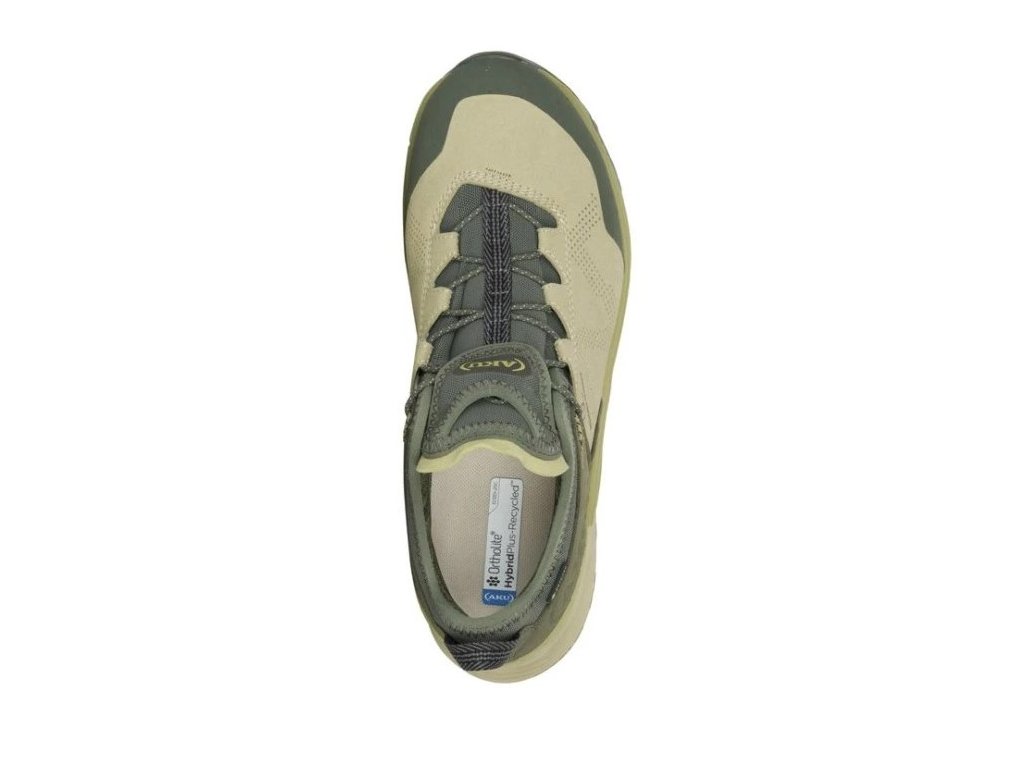 Turistická bota AKU Omnia V-Light GTX má podrážku vyrobenou z částečně recyklované pryže s asymetrickým vzorkem. Ten ve spolupráci se systémem AKU Elica Natural Stride podporuje biodynamickou účinnost. Vnitřní přední část boty má zvýšenou hustotu chrániče špičky a ten zlepšuje přilnavost k pedálům elektrokola. Svršek boty je tvořen mikrovláknem a částečně recyklovanou tkaninou pro zvýšení odolnosti. Ochrana svršku je vyrobena z částečně recyklované pryže. To přispívá k ekologickým vlastnostem výrobku. Bota se vyznačuje použitím dvojí hustoty v podrážce a běhounu, které jsou společně tvarovány, aby se snížilo používání lepidel. Tyto boty jsou vyrobeny pro ty, kteří hledají efektivitu a pohodlí v různých terénních podmínkách.