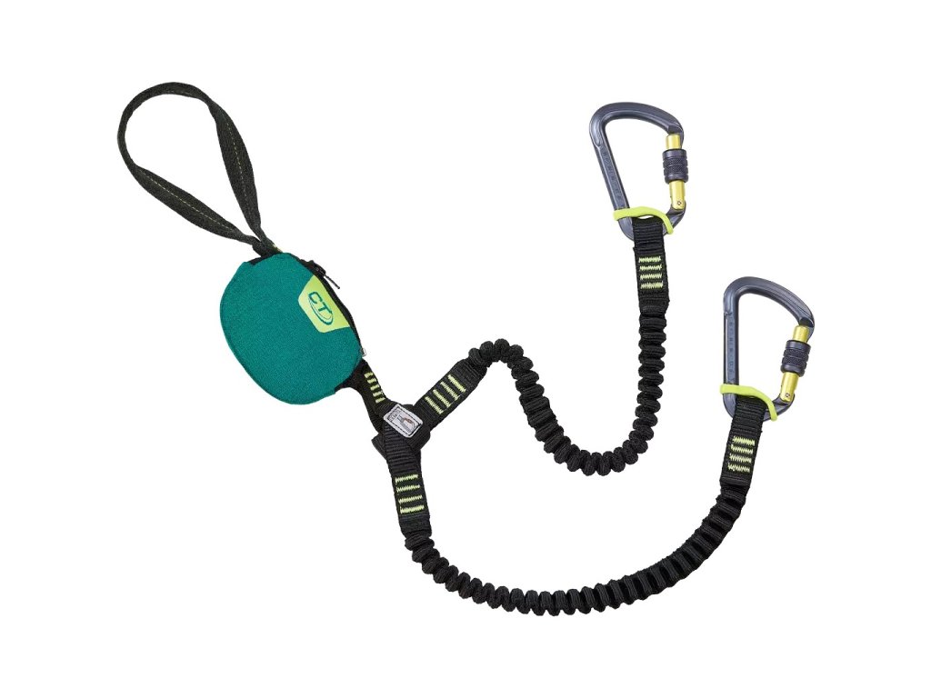 - Vybaven šroubovacími karabinami K-CLASSIC s gumovým upevňovacím prvkem FIXBAR, který fixuje karabinu v smyčce ramena tak, aby se během používání nepohybovala a neotáčela, což by mohlo zapříčinit křížové zatížení karabiny.