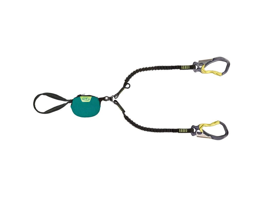 - Vybaven karabinami s dvojitým zámkem a ergonomickým úchopem, s velkou světlostí zámku pro extrémně snadné zapínání a odepínání z lan nebo řetězů na via ferratě.
