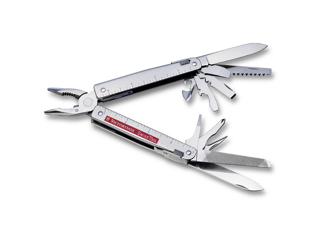 Multifunkční kapesní nástroj SwissTool je dodávaný v nylonovém pouzdře, vybavený pojistkou a 26 funkčními nástroji:
