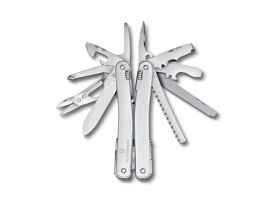 Multifunkční kapesní nástroj Swiss Tool Spirit značky Victorinox je dodáván v nylonovém pouzdře, vybavený pojistkou a 24 funkcemi
