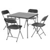 Tento odolný skládací stůl s ocelovou konstrukcí je navržen tak, aby pohodlně usadil 4 osoby. Antimikrobiální a UV ošetřená deska stolu a židle. Otevřený rozměr 86,5 x 86,5 x 71,2 cm. Složená velikost 86,5 x 44,5 x 6,4 cm. Materiál - deska stolu Black PP. Materiál - rám Ocel. Hmotnost produktu 14,5 kg. Přenosná taška Ano. Obsahuje 4 židle. UV ošetření a antimikrobiální. Provedené zkoušky Mechanické zkoušky: EN 581-1, EN581-2 a EN581-3
