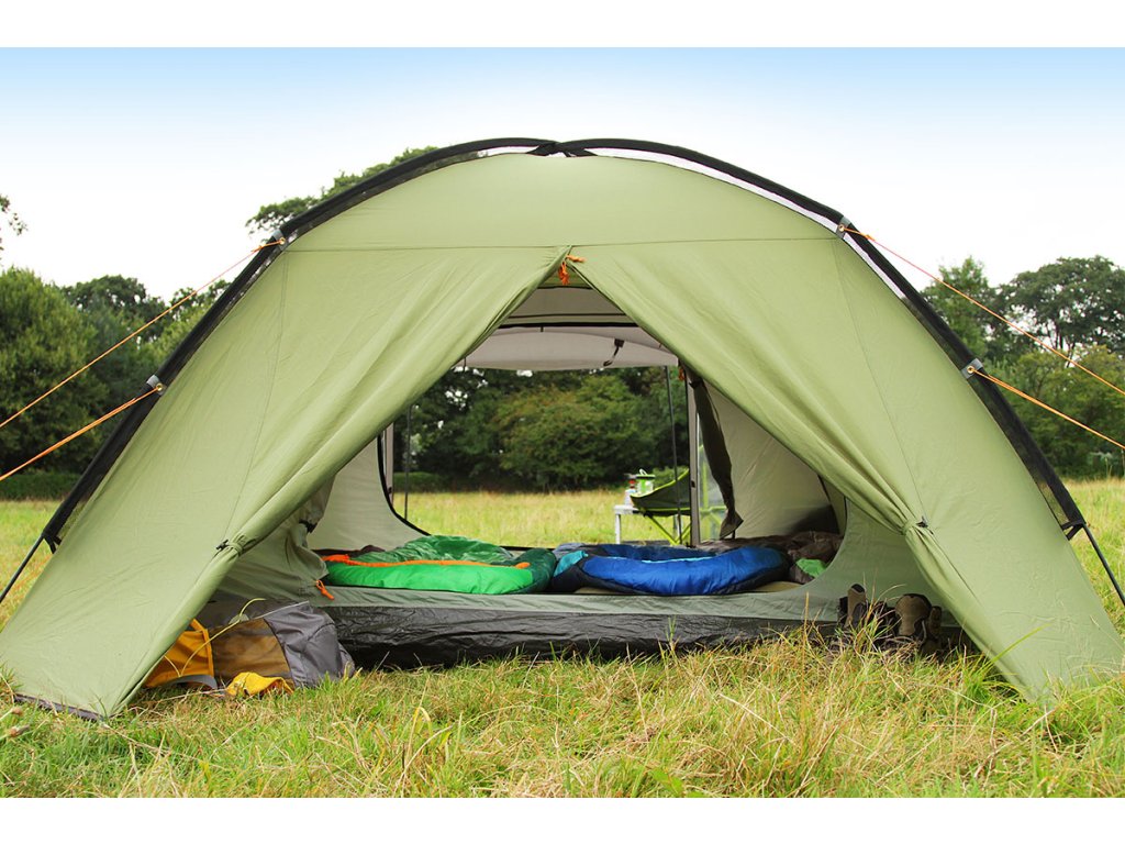 Veškeré vybavení můžete uložit do prostorné předsíňky a boty do menší předsíňky s druhým vchodem. Speciální úprava vnějšího stanu UVGuard™ zabraňuje degradaci tkaniny vlivem slunečního záření.