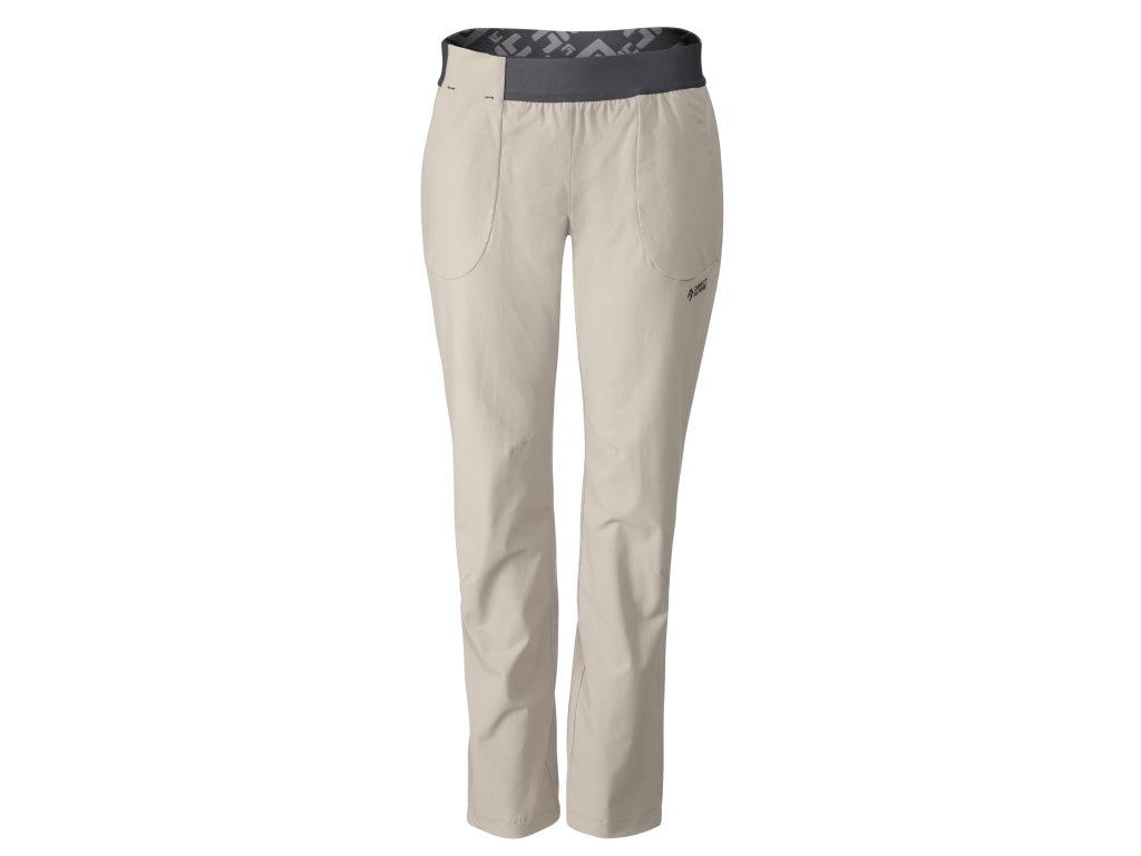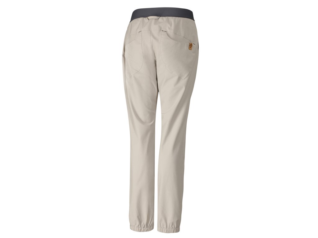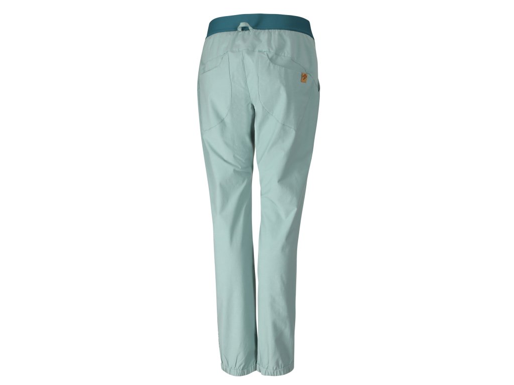 Dámské kalhoty určené především na lezecké aktivity, ale poslouží vám také pro běžný pohyb v přírodě. Díky příjemnému strečovovému materiálu s bavlnou zaručují kalhoty pohodlné nošení a velkou volnost pohybu při sportovních aktivitách. Pas zakončený širokou gumou lze pojistit tkaničkou - netlačí a nepřekáží v sedacím úvazku. Poutko na zadním díle na zavěšení kahot nebo pro zavěšení maglajz pytlíku.
