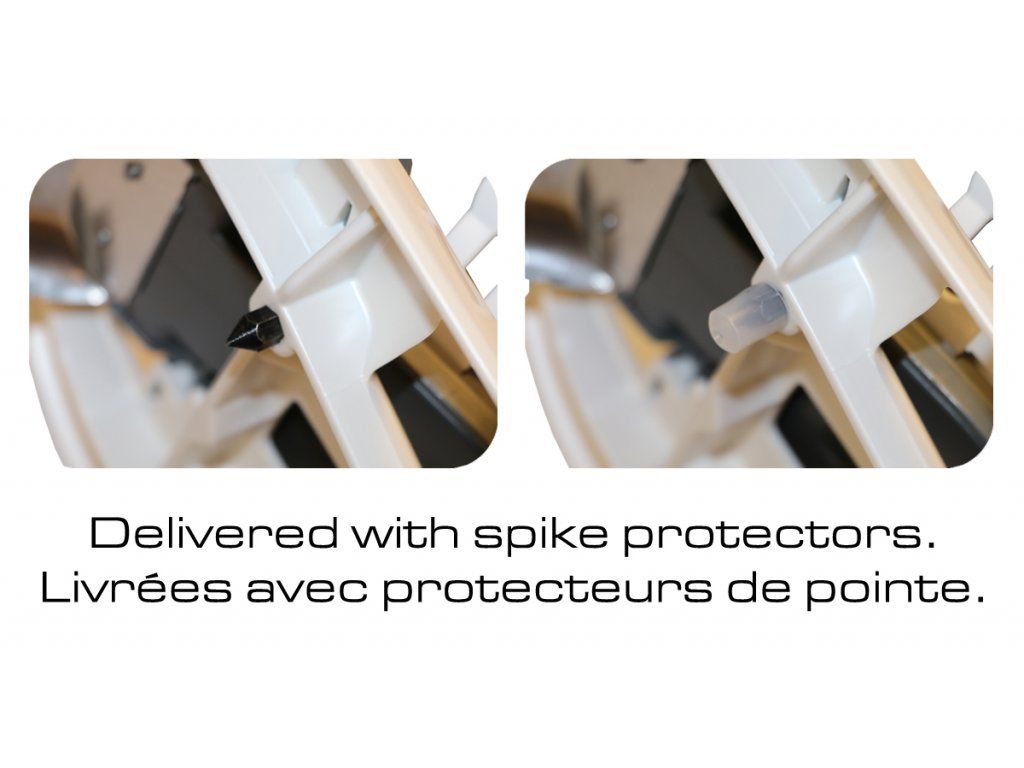 - Přední čelist – při každém kroku se na špici vysune přední čelist s třemi nerezovými hroty, díky kterým se nesmekneš a nebudeš zbytečně ztrácet energii.