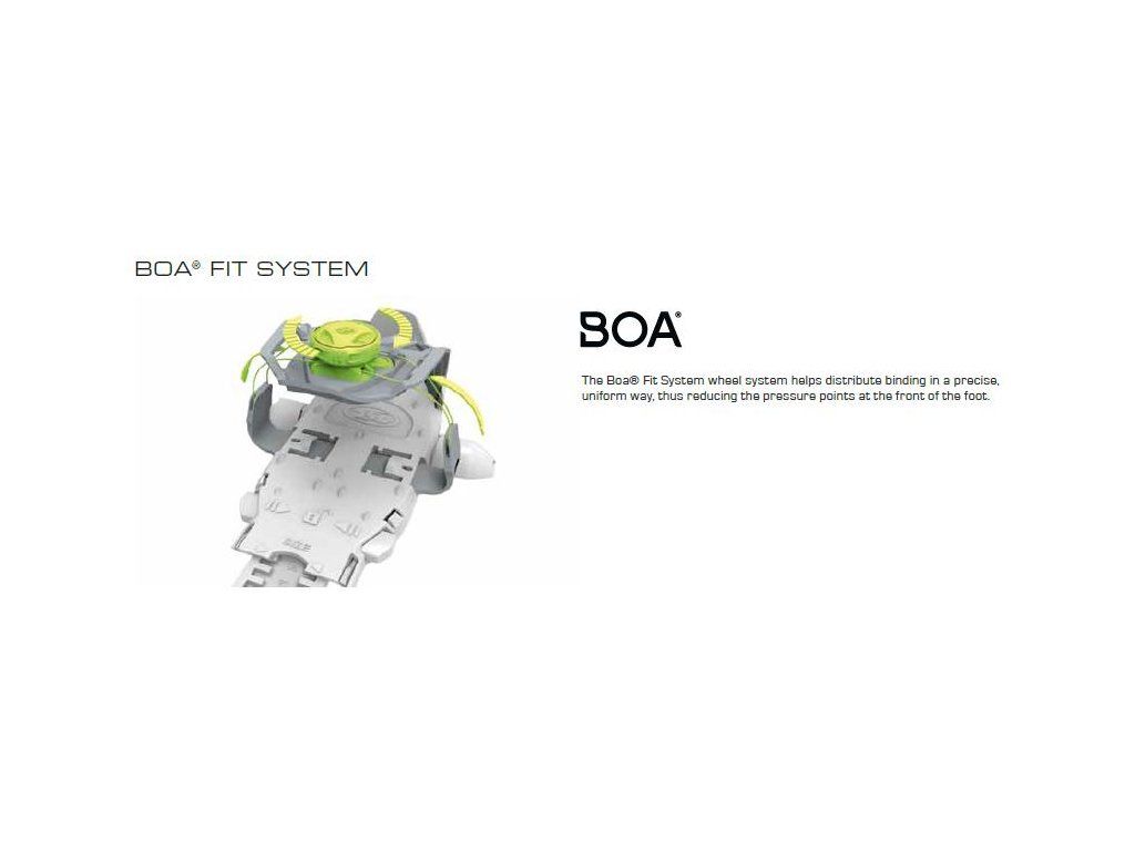 - BOA® FIT SYSTEM – Kromě snadnosti používání je velkým benefitem BOA® systému rovnoměrné rozložení zatížení na špičku boty a nedochází tak k přetížení vrchní středové části špičky boty.