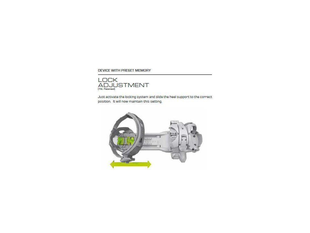 - Nastavení velikosti vázání s pojistkou – je rychlé, bezpečné a nedovoluje posunutí vázání během chůze.