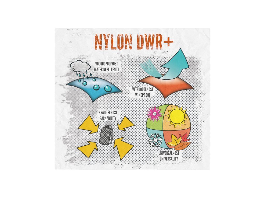 Nylon DWR+ výrobce o materiálu uvádí: