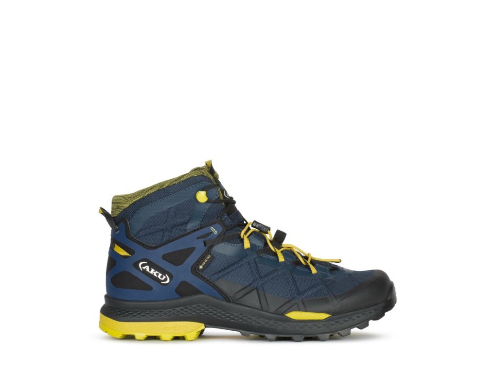 Obuv určená pro rychlou turistiku; dynamické a spolehlivé i na těch nejobtížnějších trasách. ROCKET DFS GTX využívá inovativní běhoun Vibram s technologií Traction Lug, která díky speciálnímu designu zlepšuje trakci a přilnavost o 25 %. Svršek má příčně žebrovanou strukturu a je chráněn vrstvou 3D tisku. Exkluzivní technologie AKU Dual Fit System (DFS), vytvořená zde ve verzi pro rychlostní turistiku, vám umožňuje měnit míru přesnosti padnutí pouhým působením na dva různé systémy šněrování. Je postaven s technologií AKU Elica Natural Stride System pro podporu biodynamické účinnosti.