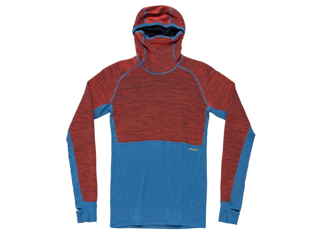 Pánské merinové triko Tuvegga Merino Hoodie od norské značky Devold, které je vyrobeno kombinací tří rozdílných úpletů.
