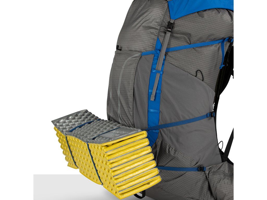 - postranní kompresní popruhy ve spodní části pro připevnění karimatky k přednímu panelu